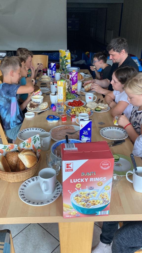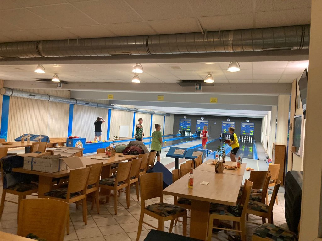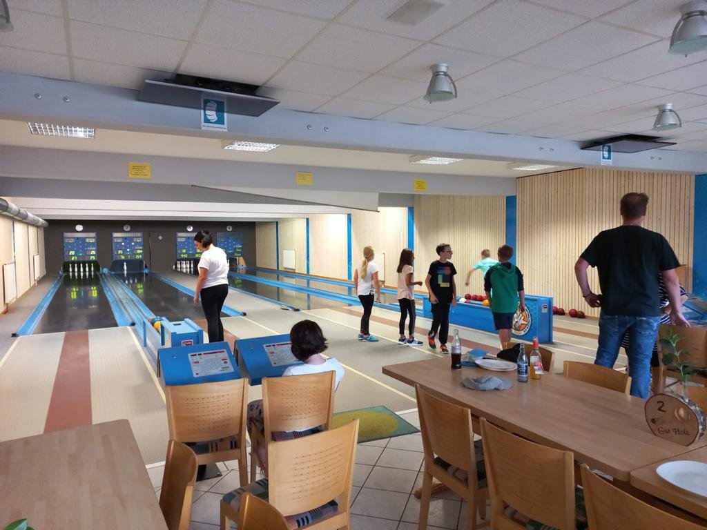 Am Sonntag 11.09 hätten die Kids ausschlafen können, waren aber alle schon gegen 8.00 Uhr wach. Die Betreuer bauten wieder das Frühstücksbuffet auf, bei dem die Kids fleißig mit geholfen haben. Beim Frühstück besprachen wir wieder den Tagesablauf und die Kids bekamen wieder ihre Aufgaben, die sie ohne Aufstand erledigten. Wir bauten das Nachtlager ab und packten schon mal die Sachen zusammen, da es der letzte Tag war. Nach allen erledigungen wollten die Jungs noch Kegeln und die Mädels einen Film schauen. Wir machten beides, die Jungs durften auf Bahn 1 und 2 Kegeln und die Mädels auf dem großen Fernseher an der Wand einen Film schauen, sie entschieden sich für „Meg“. Zwischen 14 und 15 Uhr kamen dann auch schon die Eltern und wir begannen das abschiedsgrillen vom WE. Die Kids kegelten noch gemeinsam mit den Eltern zusammen. Gegen 19 Uhr endete dann das Grillfest und die Nacht auf der Kegelbahn.