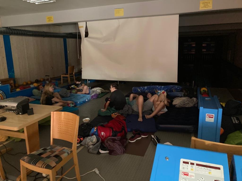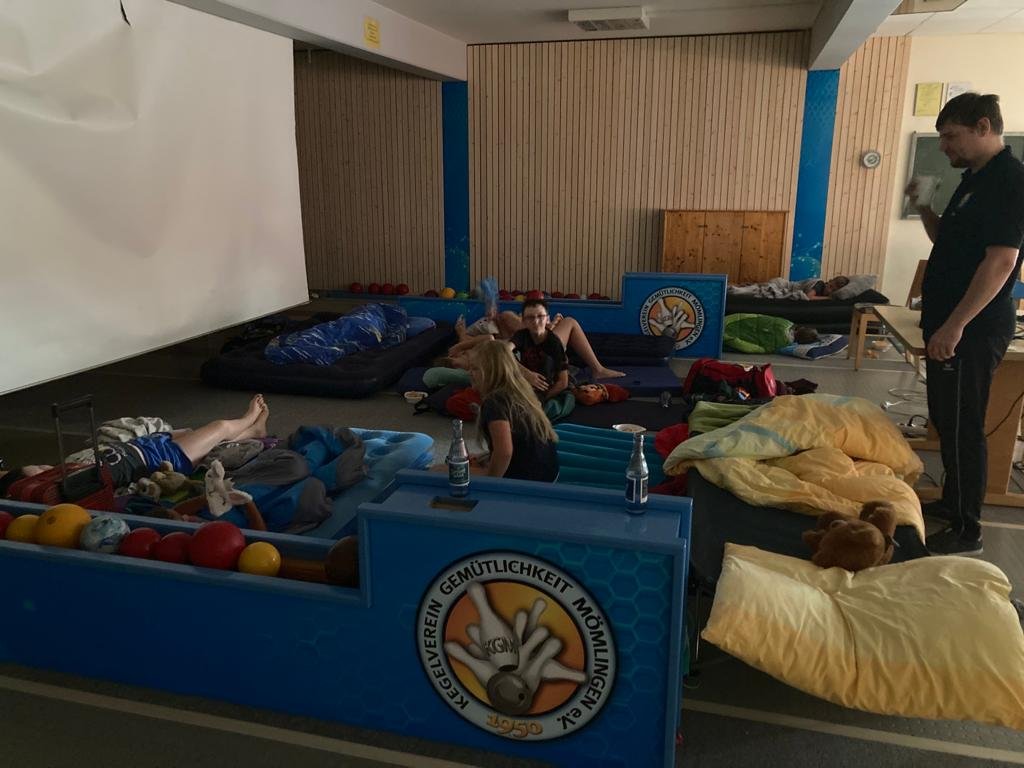 Am Freitag 09.09 begann der Einzug der Kids mit Sack und Pack zwischen 17 und 18 Uhr im Keglerheim. Kaum waren sie da begannen sie auch schon die ersten Kugeln zu schieben. Gegen 18.30 Uhr bestellten wir bei Lina das Abendessen für die ganze Truppe, das gegen 19 Uhr kam. Danach haben wir versucht unsere Nachtwanderung nach zu holen, die im warsten Sinne des Wortes ins Wasser fiel. Nach ca. 1 km mussten wir umkehren, da es begonnen hatte zu Regnen und wir dafür nicht gerüstet waren. Gegen 21.30 Uhr begannen die Kids das Nachtlager und die Betreuer die Kinoanlage auf zu bauen. Für diesen Abend haben die Kids gemeinsam abgestimmt was für ein Film sie schauen wollen. Sie haben sich für „We Can Be Heroes“ entschieden, der gegen 22 Uhr begann. Gegen 00.30 Uhr Endete der erste Tag und die Kids legten sich alle zum Schlafen hin.