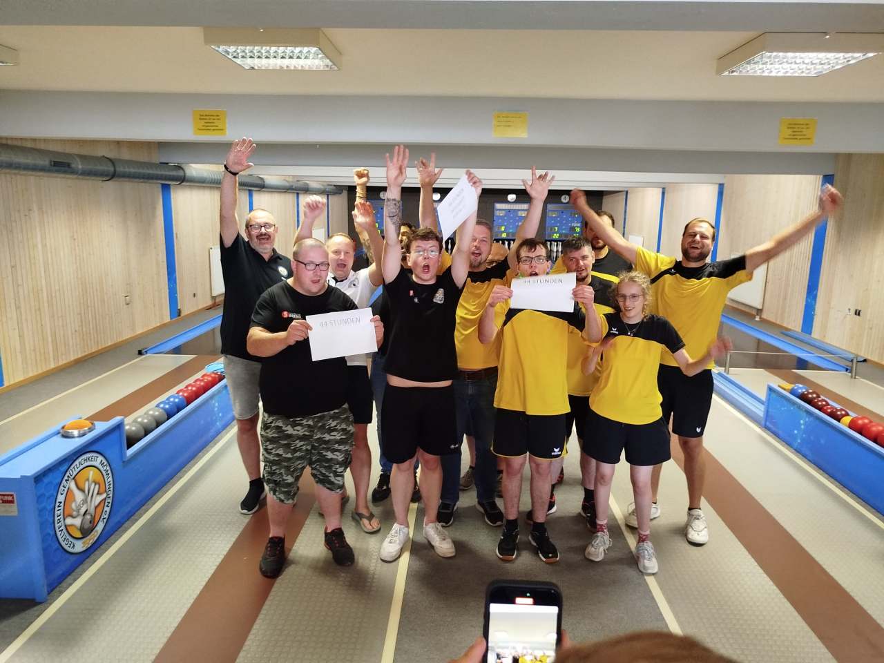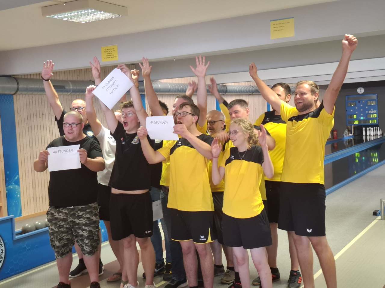 das Geschah als unser Team nach 44 Stunden erstmals wieder die Kegelbahn verlassen durfte: